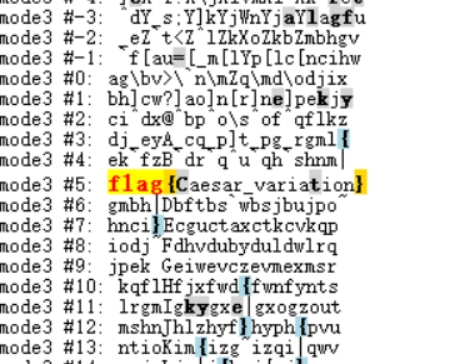 这个就是凯撒密文了,这种我认为是最恶心的密文了,看不出规律,只能放在随波逐流上看有没有flag在里面,