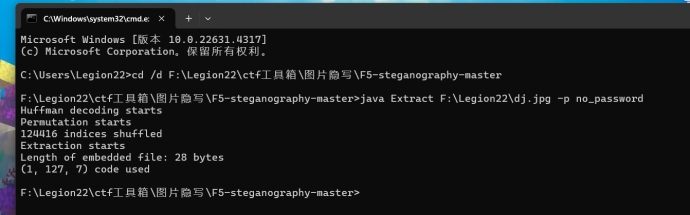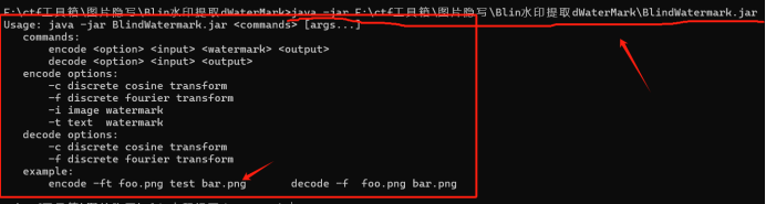 - 水印加密,开局给了jar,我工具箱也有,方法一,常规脚本使用,使用指令java -jar xxx打开