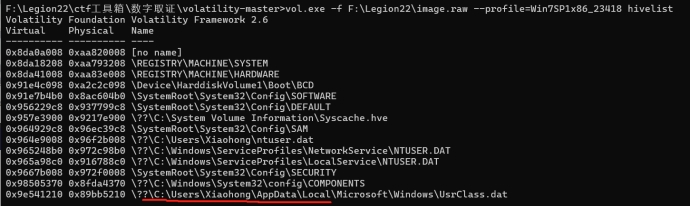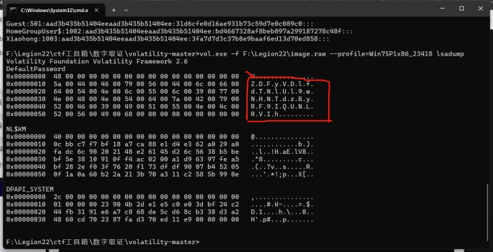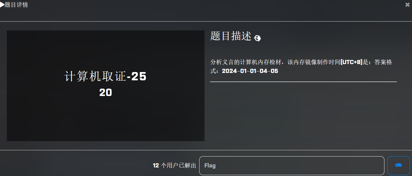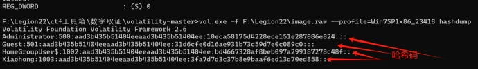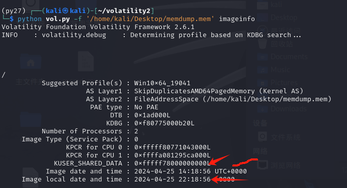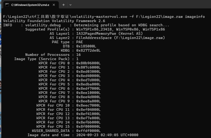 查看内存检材的基本信息,这里考察内存取证,工具很多,一把梭、手搓都可:这里两种都有