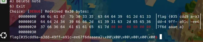 io.sendafter(b':', b'a' * (0x28 - 4) + b'stop')