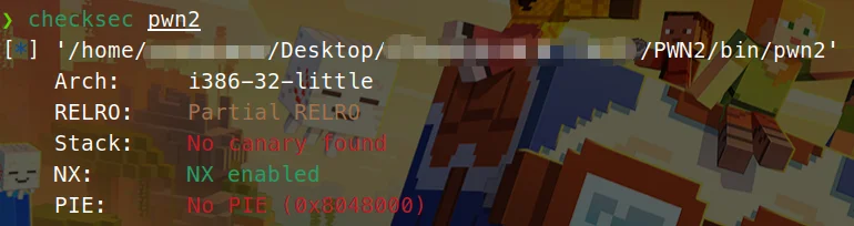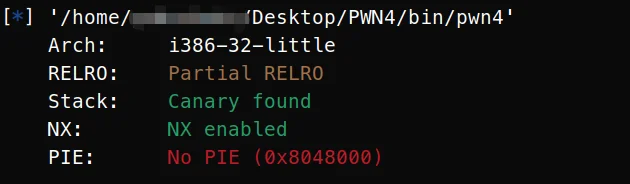 i386 - 32 - little,即 32 位小端序的 Intel x86 架构。 - RELRO:开启了