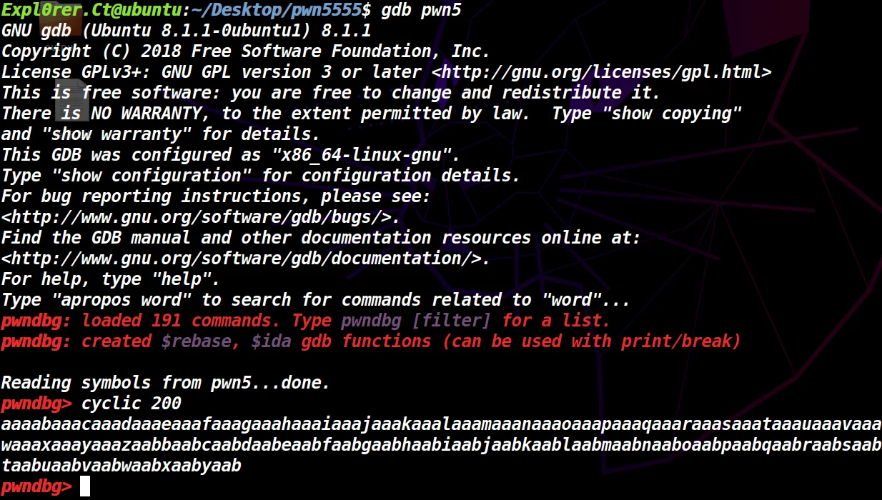 对于缓冲区大小,不是0x64+4吗?这里是一个坑,这里我们具体要用gdb+cyclic来分析: