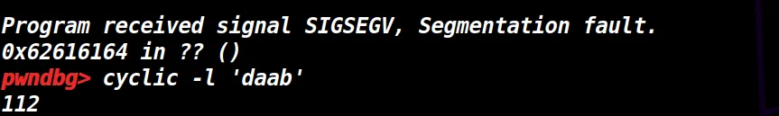 这时,EIP被“daab”所覆盖,这里用cyclic工具查此时的偏移量。