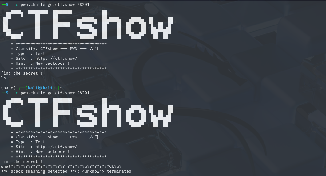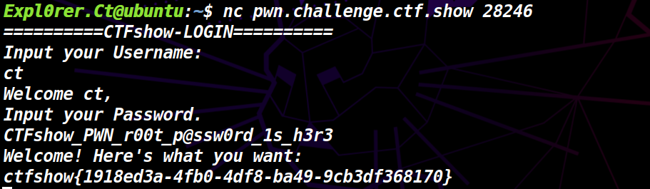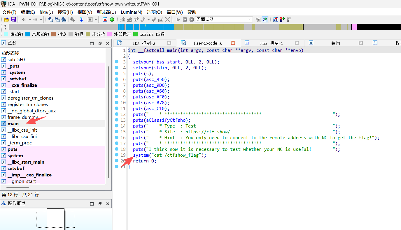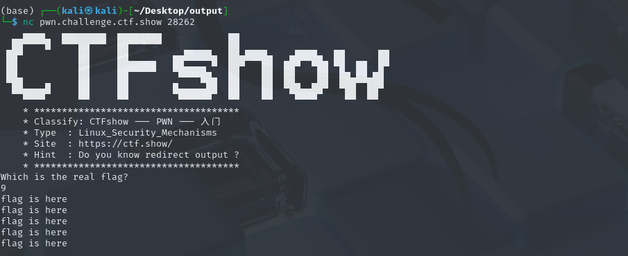 不过说实话我是真不知道PWN_001文件给来干嘛的,直接nc交互一下就出flag了,这题没搞懂ctfshow意图在哪。