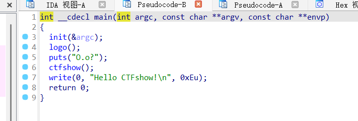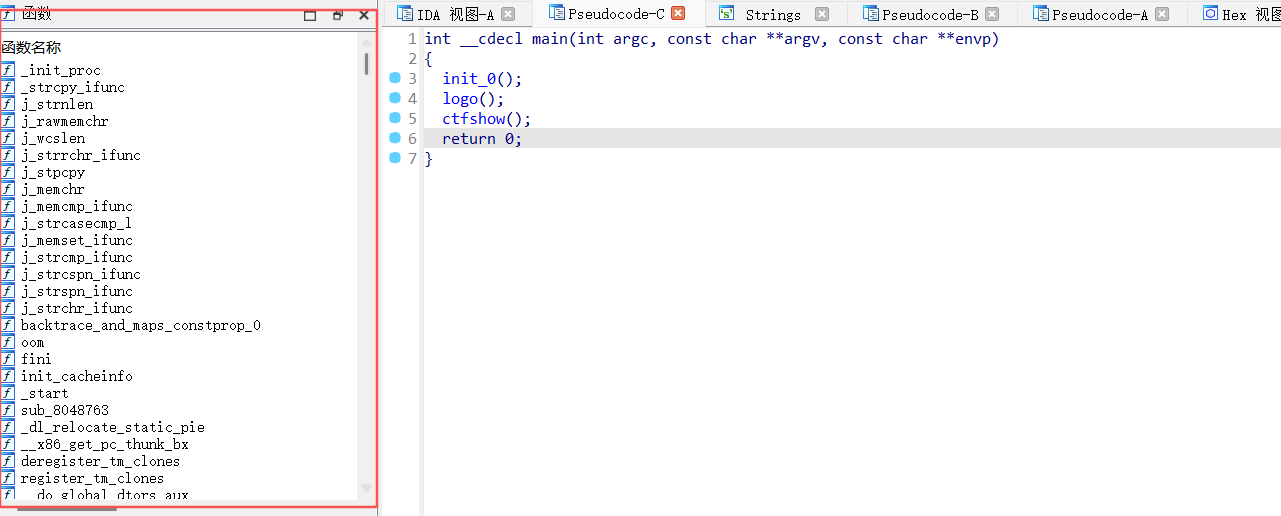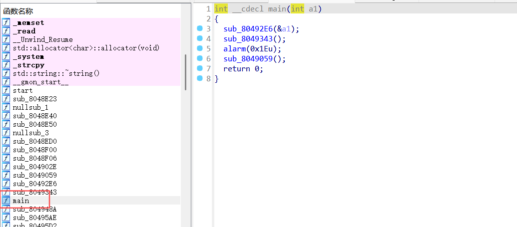接着用64位IDA打开查看main函数(按F5进入反汇编):
