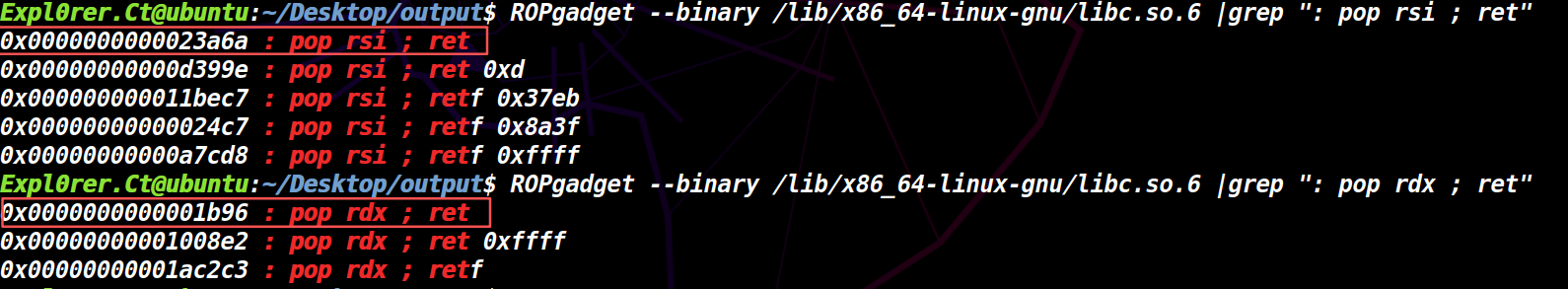 可以看到,它已经很智能的帮我们构造好了这些,我们仅仅需要将它构造好的payload提取出来,然后填充上偏移即可进行我们的攻击。