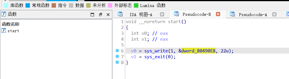 这个没main函数,那我们回看那段汇编语言asm,这段汇编语言更像是在帮助我们了解汇编语言的逻辑语法规则的,在PWN-1文章中就有讲过汇编语言,这里就直接跳过详解