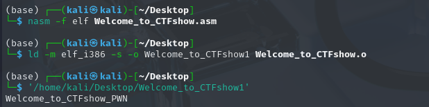 ld -m elf_i386 -s -o Welcome_to_CTFshow1 Welcome_to_CTFshow.o