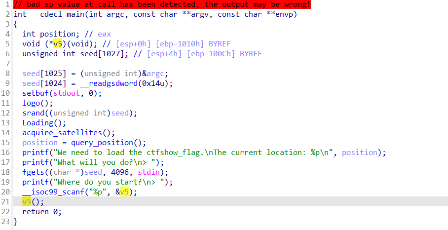 函数明确使用 __isoc99_scanf("%ld", v4)
