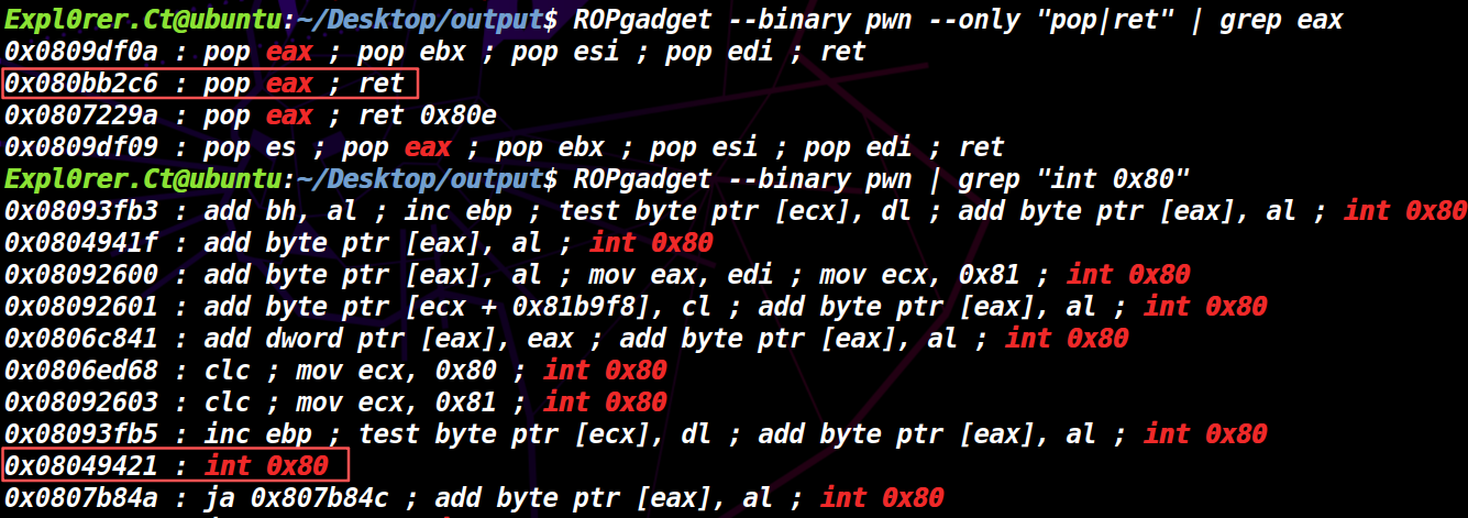 还是明显的栈溢出,但是由于是静态编译,我们无法再使用ret2libc来进行getshell,程序中也没有system函数,我们可以尝试直接使用ROPgadget来帮助我们构造一个ROP链: