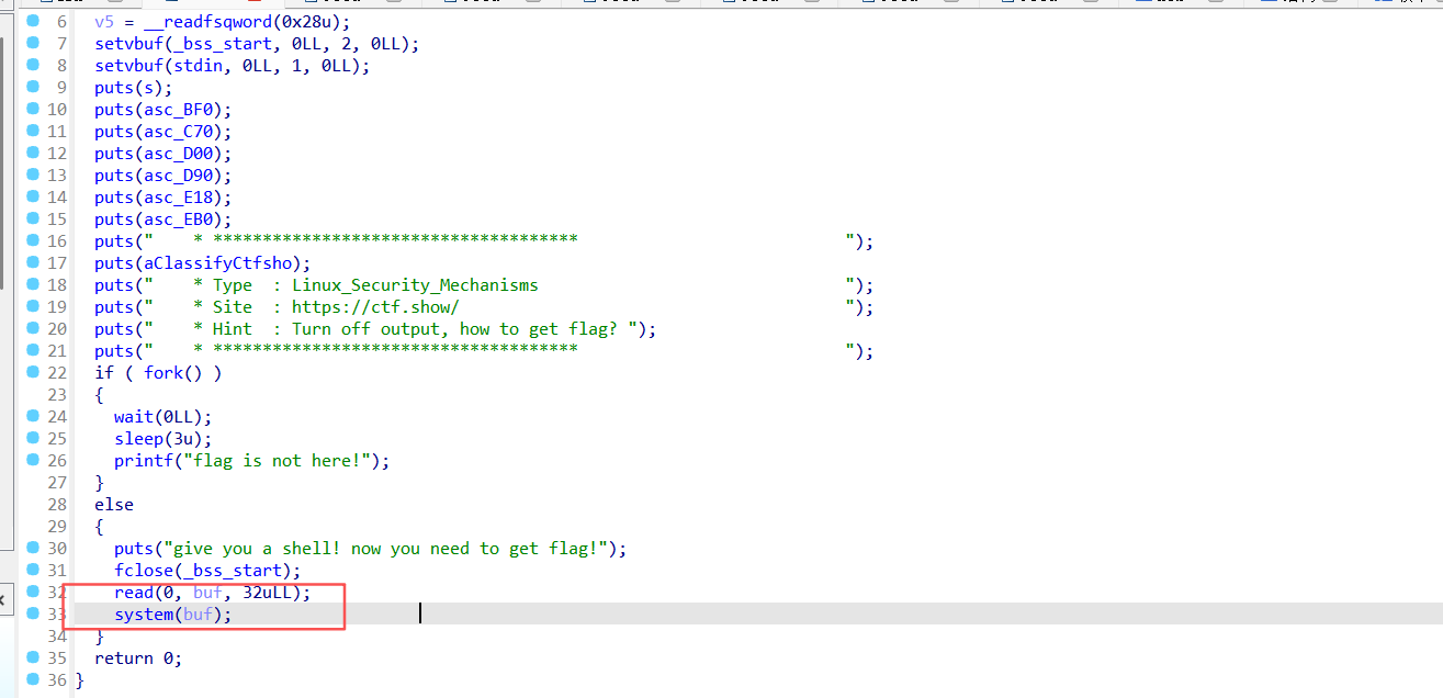 回到main跟进一下这个“6”的函数,看看里头是不是真在执行system后门函数: