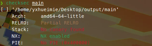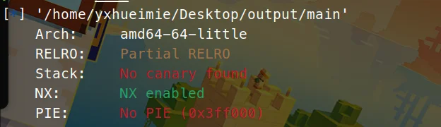 64位半开RELRO、关闭canary、PIE保护、全开NX保护。